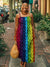 Women's Colorful Abstract Stripes Art Print Sleeveless Suspender Casual Cotton Pocket Dress