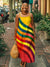 Women's Colorful Abstract Stripes Art Print Sleeveless Suspender Casual Cotton Pocket Dress