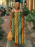 Women's Colorful Abstract Stripes Art Print Sleeveless Suspender Casual Cotton Pocket Dress