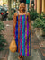 Women's Colorful Abstract Stripes Art Print Sleeveless Suspender Casual Cotton Pocket Dress
