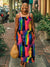 Women's Colorful Abstract Stripes Color Blocks Art Prints Sleeveless Suspender Casual Cotton Pocket Dress