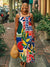 Women's Retro Abstract Colorful Geometric Pattern Art Print Casual Stretch Pants