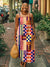 Women's Colorful Abstract Stripes Geometric Art Prints Sleeveless Suspender Casual Cotton Pocket Dress
