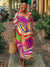Women's Colorful Abstract Texture Art Print Long Sleeve Round Neck Dress