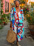 Women's Colorful Abstract Texture Art Print Long Sleeves V-neck Dress