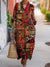 Women's Colorful African Retro Geometric Stripes Art Print Long Sleeves V-neck Dress