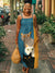 Women's Colorful Cute Cat Art Print Sleeveless Suspender Casual Cotton Pocket Dress