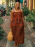 Women's Colorful Ethnic Tribal People Pattern Art Print Sleeveless Suspender Casual Cotton Pocket Dress