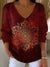 Women's Retro Color Block Splicing Art Trumpeter Abstract Print Casual V Neck T-Shirt