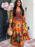 Women's Colorful Flowers Art Print Long-sleeved V-neck Dress