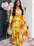 Women's Colorful Flowers Art Print Long-sleeved V-neck Dress