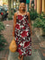 Women's Colorful Flowers Art Print Sleeveless Suspender Casual Cotton Pocket Dress