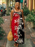 Women's Colorful Flowers Art Print Sleeveless Suspender Casual Cotton Pocket Dress