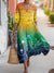 Women's Colorful Gradient Stripes Art Print Long-sleeved V-neck Dress