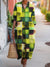 Women's Retro Abstract Rectangle Color Block Art Print Cotton Lapel Button-Down Shirt Dress