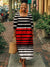 Women's Retro Abstract Stripe Art Print Long Sleeve Round Neck Dress
