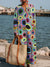 Women's Colorblock Ethnic Pattern Art Print Button Back Casual Knitted Shirt