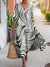 Women's Retro Stripes Art Print Long-sleeved V-neck Dress