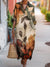 Women's Colorful Flowers Art Prints Cotton Lapel Button-down Shirt Dress