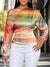 Women's Colorful Lines Art Print Asymmetrical Slant Collar Shirt
