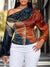 Women's Colorful Retro Geometric Lines Art Print Asymmetrical Slant Collar Shirt