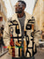 Women's Vintage Black Abstract Art Print Casual Sherpa Coat Cardigan